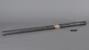 Rundes Blechrohr, an den Enden umgestülptes Blech mit gelblich-weißem Pulver gefüllt. Signiert, handschriftlich "Magnesiumfackel" und unleserlicher Preis(?). Gestempeltes Etikett der "Drogerie in Brixen Besitzer: Fried. Peer, Apotheker".