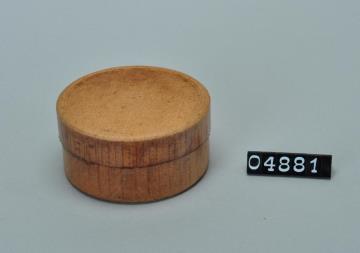 Fettdichter, brauner Salbentopf aus Pappe, Stülpdeckel ohne Etikett. Innen gewachst.