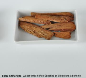 Wegen ihres hohen Gehaltes an Chinin und Cinchonin diente die gelbe Chinarinde vor allem zur industriellen Gewinnung der Wirkstoffe. In der Apotheke hielt man sie als Muster für den Qualitätsvergleich bei Lieferungen aus fernen Ländern vorrätig.