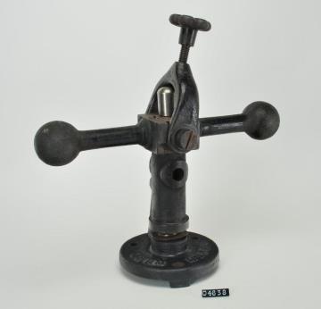 Schraubspindel-Presse zur Herstellung einer Tablette. Stempel aus Edelstahl. Fa. Mürrle Pforzheim