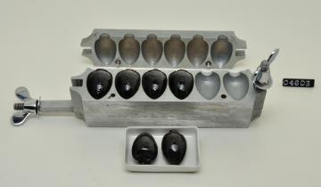 Ichthyol-Scheidenzäpfchen: Aus Ichthyol, Glycerin und Gelatine gegossene Vaginalkugeln mit entzündungshemmender Wirkung in passender Gießform für 12 Ovuli.