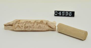 Kupfervitriol-Stift, 19. Jh. Aus Kupfersulfat und einigen Tropfen Wasser unter Einwirkung von Hitze geformter Ätzstift. Aufbewahrt in runder Pulverschachtel. Beschriftet.