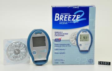 Gerät zur Selbstkontrolle des Blutzuckerspiegels. Mit nur 1 µl Blut und einer Messzeit von 5 Sekunden ist das Gerät einfach und zuverlässig. Die BREEZE® 2 Sensorenscheibe steht mit nur einmal Einlegen für 10 Blutzuckermessungen bereit. Mit Microlet Stechhilfe.