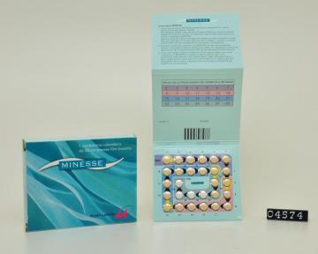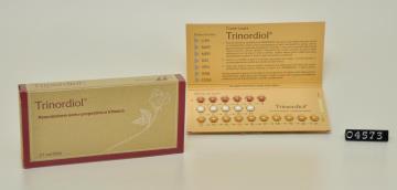 Farbig bedruckte und verzierte Packung einer "Pille". Mit Inhalt und Beipackzettel in italienischer Sprache. ”Die Pille”: Als Arzneiform gab es die kleinen Kugeln schon lange, aber seit den 1960er Jahren wird das Wort ”Pille” mit Empfängnisverhütung gleichgesetzt. Aus einem breiten Sortiment wählen Gynäkologen das für Alter und Typ am besten geeignete Hormonpräparat. Zubereitungsart und Verpackung berücksichtigen die persönlichen Bedürfnisse der Patientinnen. Aufkleber mit Angabe der Wochentage erinnern an die regelmäßige Einnahme. Damit die Einnahmepause in der vierten Zykluswoche nicht beachtet werden muss, gibt es Präparate mit 28 Pillen. Die Patientin nimmt jeden Tag eine Pille; die letzen sieben sind Placebos – also ohne Wirkstoff.