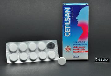 Freiverkäufliches Medikament. Tabletten sind gepresste Pulver, die sich aus Wirkstoffen und Hilfsstoffen zusammensetzen. Je nach Art ihrer Komponenten entwickeln sie verschiedene Eigenschaften. Hier: Lutsch - und Kautabletten sollen im Mund wirken und langsam zergehen. Dazu werden Hilfsstoffe eingesetzt, die den Zerfall verzögern..