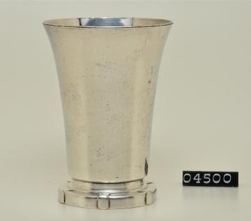 Fußbecher mit nach oben erweiterde Wandung aus Silber. Gravur im Standfuß "VDN SCHWERTE" 944