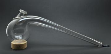 Retorte aus farblosem Glas mit Einfüllstutzen.