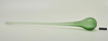 Kugelförmiges grünes Waldglas mit besonders langem und dünn ausgezogenem Hals. Mit vielen Lufteinschlüssen. Zur Destillation von Quintessenzen - der hohe Hals ermöglichte die Abtrennung der “ganz subtilen Geister”.