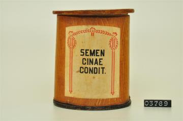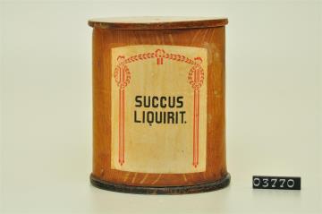 Braune, zylinderförmige Standdose aus maseriertem und lackiertem Hartpapier, Leicht vorstehender, dunkelbrauner Holzboden und vorstehender, flacher Steckdeckel aus Holz. Schwarz signiert.