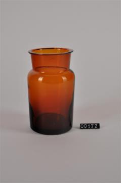 Brauner, zylindrischer Flaschenkörper mit flacher Schulter; Mündungsrand ausgebogen, ausladend. Hals schräg angesetzt, sich nach oben öffnend. Glatter, in der Mitte etwas nach oben gewölbter Boden ohne Bodenprägung.