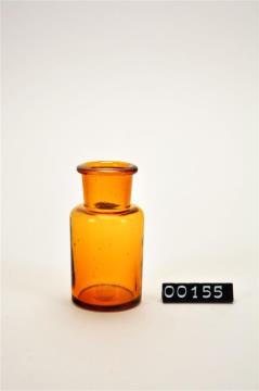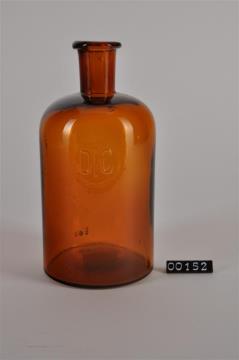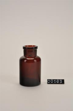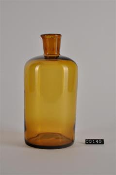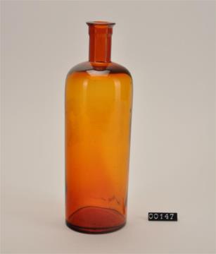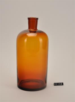 Brauner, zylindrischer, hoher Flaschenkörper mit leicht abfallender Schulter; Mündungsrand regelmäßig verdickt. Mit Seitennaht. Leicht nach oben gewölbter Boden mit Bodenprägung.