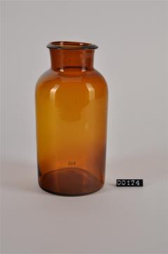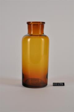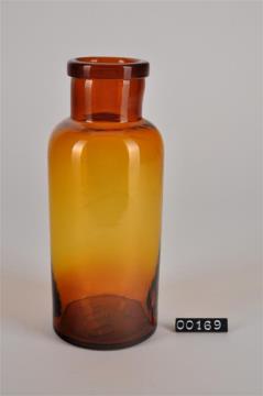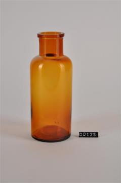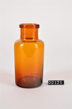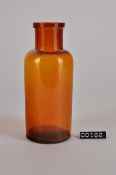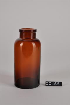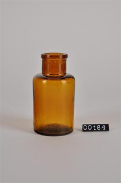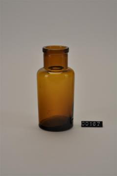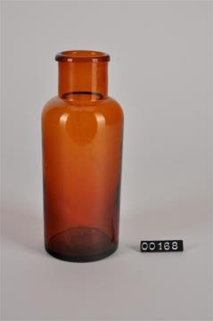 Brauner, zylindrischer Flaschenkörper mit flacher Schulter; Mündungsrand regelmäßig verdickt. Mit Seitennaht. Nach oben gewölbter Boden mit Bodenprägung.