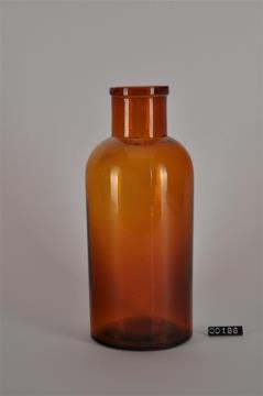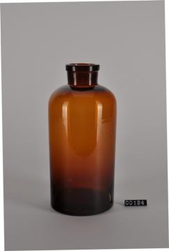 Rotbrauner, zylindrischer Flaschenkörper, maschinell hergestellt, mit abfallender Schulter und Seitennaht; mit Lufteinschlüssen. Mündungsrand manuell aufgesetzt. Nach oben gewölbter Boden mit Bodenprägung. 186-3 mit Bodenprägung der Firma Molteni, Firenze.