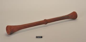 Stößel aus Eisen mit aufgeschwungenen Enden, verschieden groß. Mittig zwei umlaufende Ringe. Diente zum Zerstoßen von Substanzen.