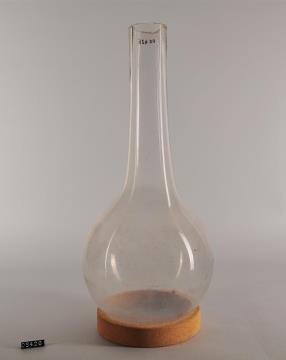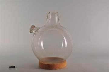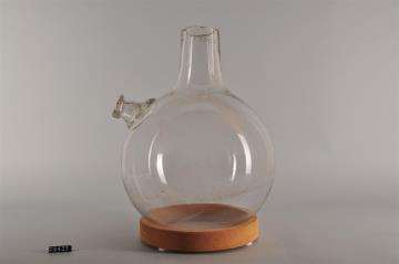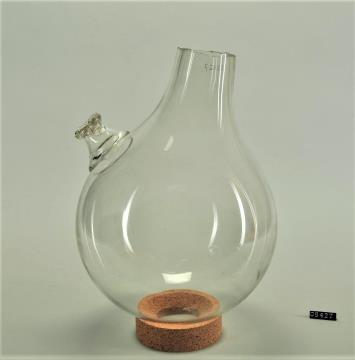 Retorte aus farblosem Glas mit Einfüllstutzen.