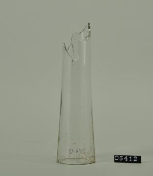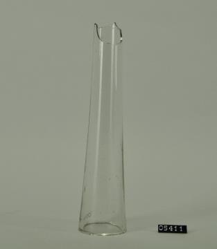 Sich nach oben hin verjüngendes Rohr aus farblosem Glas. Oberer Rand unregelmäßig abgeschlagen. Wurde höchstwahrscheinlich als Überleitungsrohr in der Destillation verwendet.