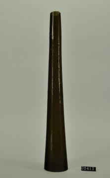 Sich nach oben hin verjüngendes Rohr aus breun-grünem Glas mit vielen Lufteinschlüssen. Wurde höchstwahrscheinlich als Überleitungsrohr in der Destillation verwendet.