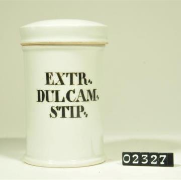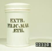 Zylinderförmiger Porzellantiegel mit Stülpdeckelrand, wenig ausladendem, schmalem und gerundetem Rand und Fuß. Flacher, kaum gewölbter Stülpdeckel mit gerader Wand und zartem Wulstrand. Standboden nach innen eingezogen. Eingebrannte schwarze Signatur