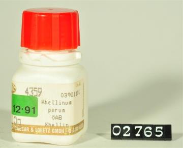 Weiße Kunststoff-Vierkantflasche (Weithalsflasche) aus Polyethylen mit rotem Schraubverschluss. Quadratischer Boden. Verpackt in braunroter Medikamentenschachtel. Etikettiert. Mit Analysenzertifikat vom 09.05.2001 und Warnhinweisen. Original verschlossen. Enthält Chlorcresolum