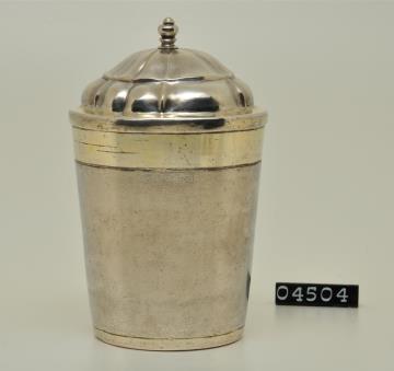 Konische Dose aus Silber mit glockenförmigem Stülpdeckel mit Knauf, innen vergoldet. Unterseite signiert: "C.M.Z."