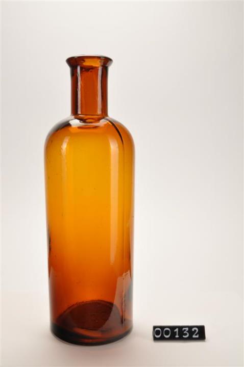 Hellbrauner, zylindrischer Flaschenkörper mit abfallender Schulter; Mündungsrand verdickt und nach aussen gebogen. Schulter und Schulterrand mit Seitennaht. Leicht hochgestochener Boden mit Bodenprägung.