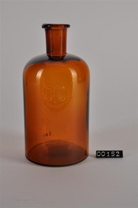 Brauner, zylindrischer Flaschenkörper mit leicht abfallender Schulter; Mündungsrand unregelmäßig verdickt und ausgebogen. Seitliche Naht. Nach oben gewölbter Boden ohne Bodenprägung.