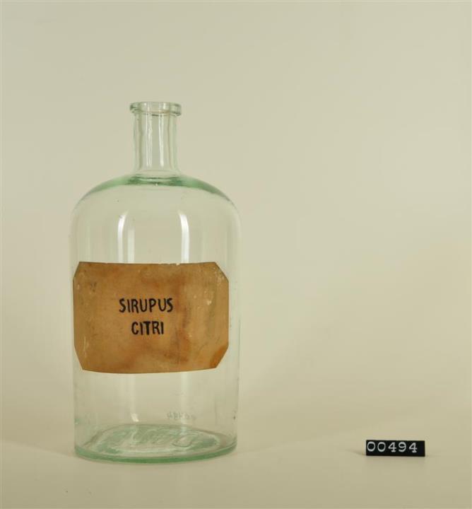 Runde Enghalsflasche ohne Stopfen aus farblosem Glas mit leichtem Grünstich. Formglas mit manuell aufgesetztem Hals und aufgelegtem Halsfaden mit abgeflachtem Profil. Signiert.