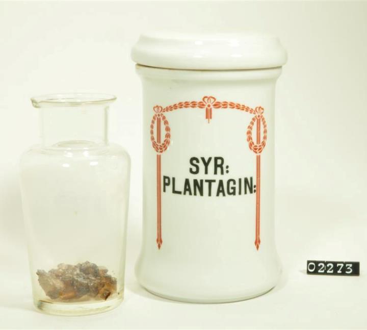 Zylinderförmiger Porzellantiegel mit Stülpdeckelrand, geschweiftem Rand und geschweiftem Fuß. Stülpdeckel mit Kehlung. Standring. Standboden plan. Jugendstilähnliche, rotbraune Randdekoration (Blattgirlande mit Bändern). Eingebrannte schwarze Signatur.