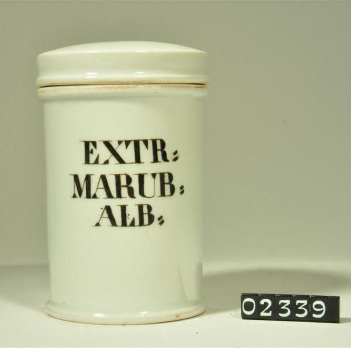 Zylinderförmiger Porzellantiegel mit Stülpdeckelrand, wenig ausladendem, schmalem und gerundetem Rand und Fuß. Flacher, kaum gewölbter Stülpdeckel mit gerader Wand und zartem Wulstrand. Standboden nach innen eingezogen. Eingebrannte schwarze Signatur