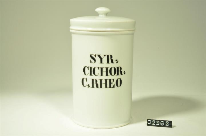 Zylinderförmiger Porzellantiegel mit Stülpdeckelrand, wenig ausladendem, schmalem, gerundetem Rand und Fuß. Flacher, kaum gewölbter Stülpdeckel mit gerader Wand und zartem Wulstrand sowie knopfförmigem Knauf. Standboden nach innen eingezogen. Eingebrannte schwarze Signatur