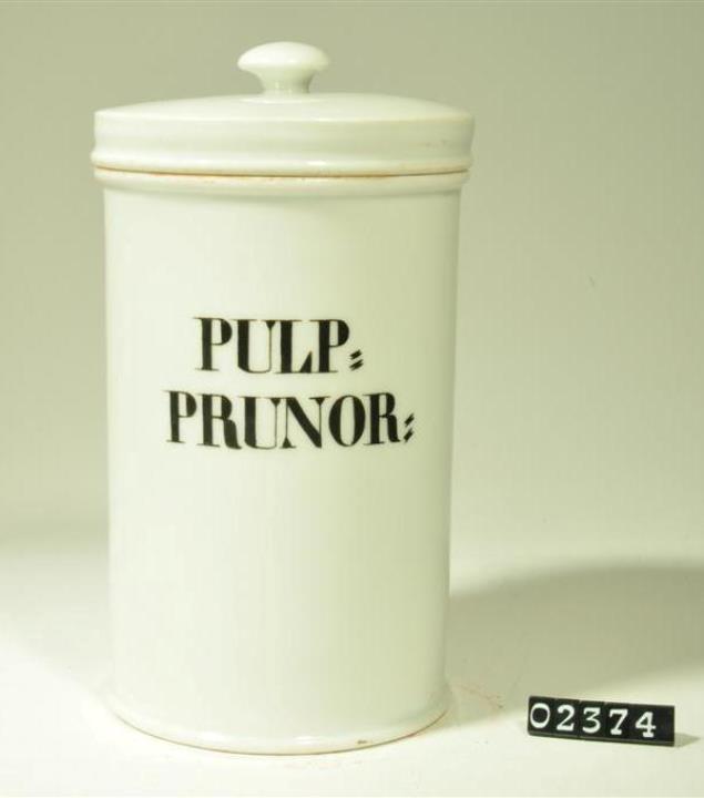 Zylinderförmiger Porzellantiegel mit Stülpdeckelrand, wenig ausladendem, schmalem, gerundetem Rand und Fuß. Flacher, kaum gewölbter Stülpdeckel mit gerader Wand und zartem Wulstrand sowie knopfförmigem Knauf. Standboden nach innen eingezogen. Eingebrannte schwarze Signatur