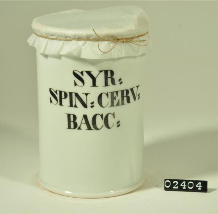 Zylinderförmiger Porzellantiegel mit Stülpdeckelrand, wenig ausladendem, schmalem, gerundetem Rand und Fuß. Tektur. Standboden nach innen eingezogen. Eingebrannte schwarze Signatur
