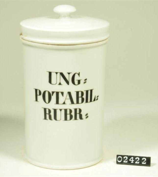Zylinderförmiger Porzellantiegel mit Stülpdeckelrand, wenig ausladendem, schmalem, gerundetem Rand und Fuß. Flacher, kaum gewölbter Stülpdeckel mit gerader Wand und zartem Wulstrand sowie knopfförmigem Knauf. Standboden plan. Eingebrannte schwarze Signatur