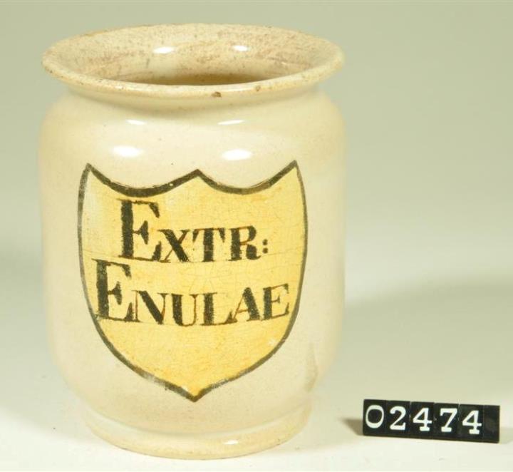 Zylinderförmiges Standgefäß mit abgesetztem Fuß, leicht eingezogenem Hals und ausgebogenem Rand. Kobaltblauer, ovaler Laubkranz. Schildförmiges Schild auf Rückseite, schwarz signiert