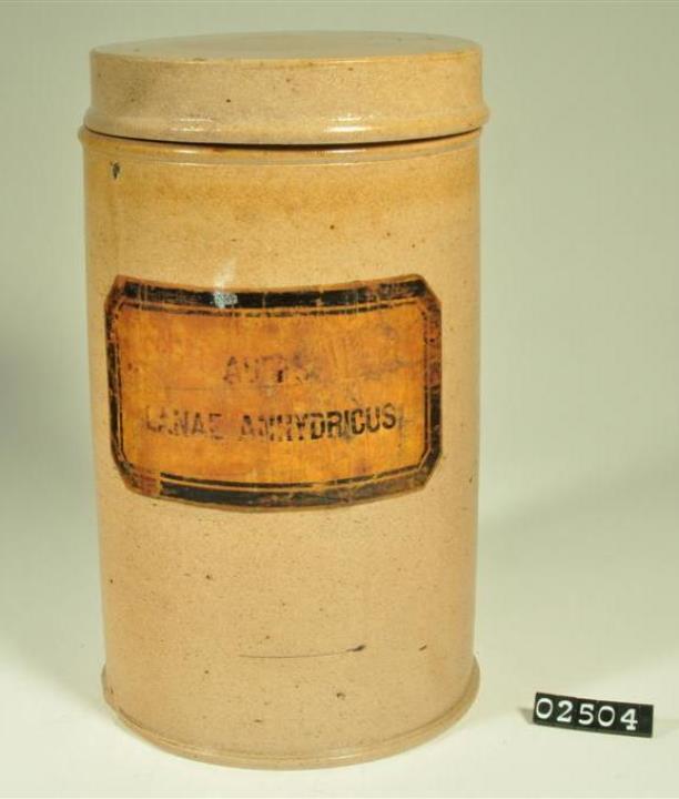 Zylinderförmiger Steinzeugtiegel mit Stülpdeckelrand, wenig ausladendem, schmalem Rand und Fuß. Flacher Stülpdeckel mit gerader Wand und zartem Rand. Standboden nach innen etwas eingezogen. Schwarz signiert