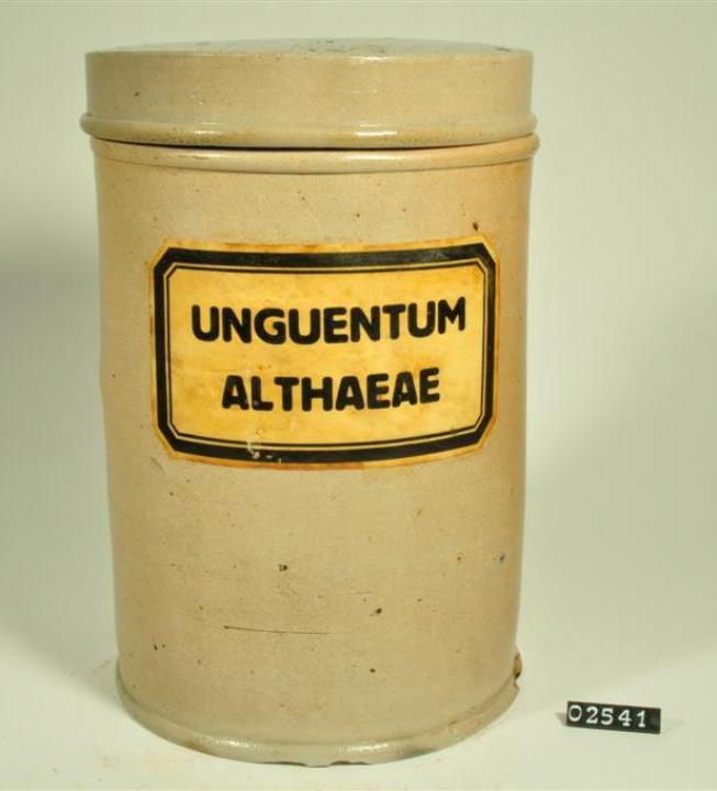 Zylinderförmiger Steinzeugtiegel mit Stülpdeckelrand, wenig ausladendem, schmalem Rand und Fuß. Flacher Stülpdeckel mit gerader Wand und zartem Rand. Standboden nach innen etwas eingezogen. Schwarz signiert