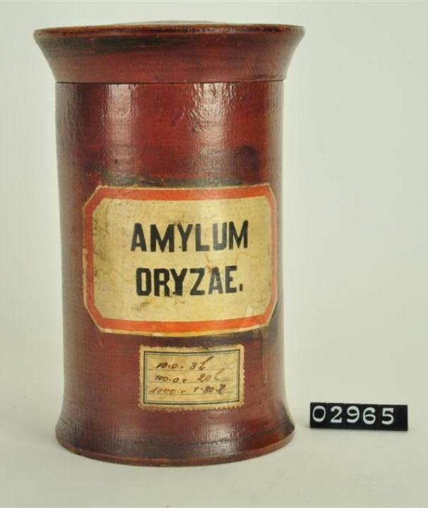 Braune, zylinderförmige Holzdose (Holzbüchse) mit ausgestelltem Standfuß und eingepaßtem, flachem Stülpdeckel und nach außen gebogenem Profil. Schwarz signiert