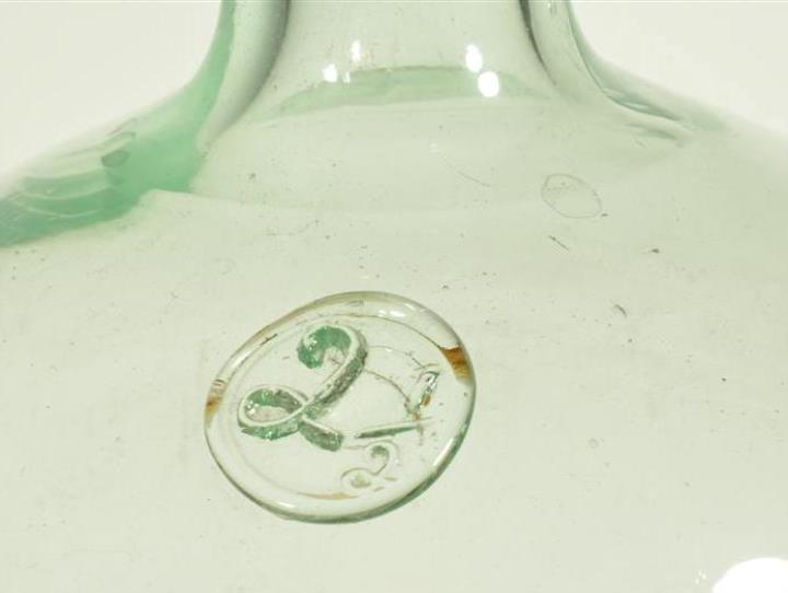 Zylinderförmige, leicht grünstichige Glasflasche mit vielen Lufteinschlüssen. Manuell aufgesetzter Hals. Mündungsrand mit umgelegtem Glasfaden. Kork mit Rezepturfaden gesichert. Nach oben gewölbter Boden. Auf der Schulter aufgeschmolzene Glasmarke mit Volumenangabe in Liter. Mit Signierapparat bedrucktes Papierschild, achteckig, mit schwarzem Doppelrand und schwarzer Schrift auf ehemals weißem Grund. Mit Schilderlack überzogen. Größe: 135 x 75 mm. Enthielt Sennesblättersirup mit Manna.