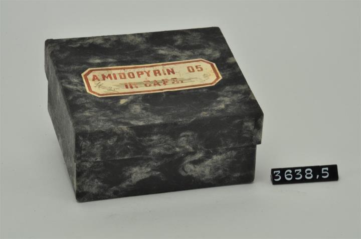 AMIDOPYRIN 03 IN CAPS.,03638-02 ACETYLSAL 05,03638-03 ACETYLSAL 1,00,03638-04 AMIDOPYRIN 03,03638-05 AMIDOPYRIN 05,03638-06 ANTIPYRIN 05,03836-07 CHININ MUR 03,03638-08 CHININ MUR 05,03638-09 CHININ MUR 1.00,03838-10 Codein phosphor 0,0? sacchar.alb.0,20 (mit schwarzer Tinte handschriftlich geschrieben),03638-11 CODEIN PHOSPH. 0 03 SACCH. 0,5 (ausgebessert handschriftlich auf 0,3),03638-12 CHININ SULF. 05 (handschriftlich ergänzt: in Papier u. Starkekaps.) (und von Ignaz Peer II: 1 St. 3,50),03638-13 GUAIJAC. CARBONIC. 050 (handschriftlich: in pulv.),03638-14 MICRÄNIN 05 (handschriftlich: ?? = L15.=),03638-15 NATRIUM SALICYL 10,03638-16 PHENACETIN 05,03638-17 PYRAMIDON 03 (handschriftlich von Ignaz Peer II<. 1 St. = 0,60?),03638-18 PYRAMIDON 03 COFF. N. BENZ 01,03638-19 PULV. DOWER SACCH.ALB. aa 015 (handschriftlich ergänzt: aa 0,10),03638-20 SALOL 05,03638-21 VERONAL 05 rot (mit Kugelschreiber ausgestrichen und mit Bleistift ergänzt: 70 ct orig)