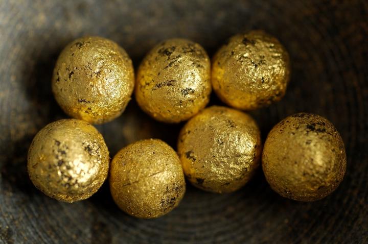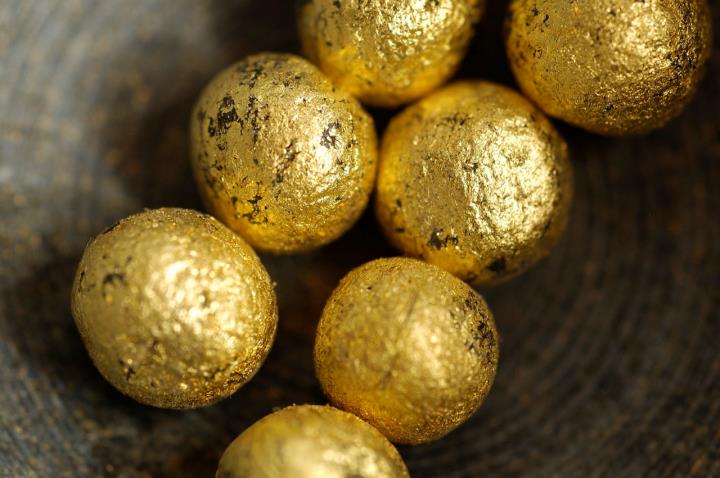 Rollierdose aus Serpentin mit vergoldeten Pillen und Goldfolie