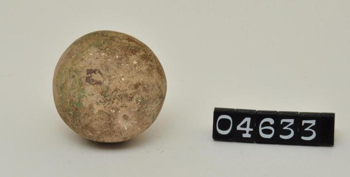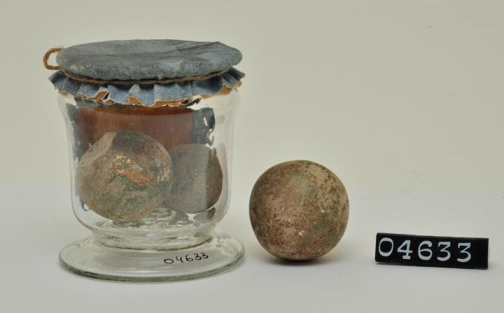 Konisch zulaufendes Bindeglas mit Fuß und ausgebogener Lippe aus farblosem Glas. Signatur in Kaltmalerei, schwarze Buchstaben und rote Anfangsbuchstaben auf nachgedunkeltem goldenen Untergrund umgeben von Rankenwerk. Originalsignatur übermalen. Hochgezogener Boden mit Hefteisenabriss. Blaue Papiertektur. Die Seltenheit und der hohe Handelswert des Orientalischen Bezoarsteins führten zur Herstellung von künstlichen Nachahmungen. Die Imitate trugen den Namen „Lapis de Goa“ nach der im 16. Jh. von den Portugiesen eroberten Insel an der Westküste Indiens. Von den Kräuter- und Gewürzhändlern wurden sie als kostbare exotische Wundermittel angepriesen. Womöglich gelangte dieses Exemplar mit dem Zug des berühmten Elefanten nach Brixen, der im Dezember 1551 auf seiner langen Reise von Indien nach Wien im danach benannten „Hotel Elephant“ Rast machte.