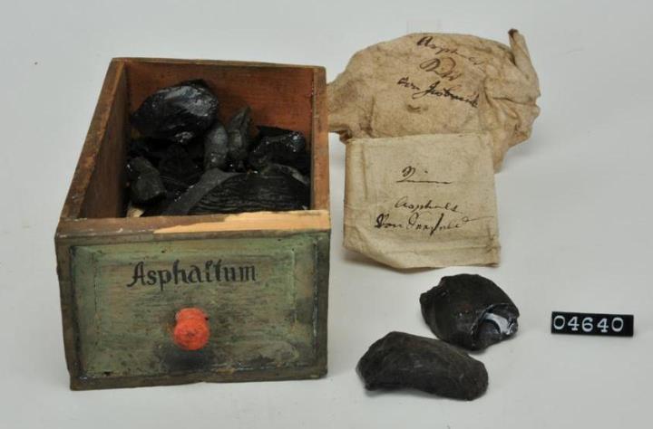 Das leichte, fossile Harz treibt auf der Wasseroberfläche und wurde aus dem Toten Meer, vom Pechsee auf Trinidad und vom Asphaltsee in Indien gewonnen. Im Altertum diente es zum Einbalsamieren der Toten oder als Rauch in die Nase geblasen gegen Schnupfen. Bis ins 19. Jh. gehörte es zum Apothekensortiment als Bestandteil von Pflastern, zum Färben von Balsamen oder als Zusatz zum Theriak. Der heute bekannte Straßenasphalt stammt aus minderwertiger Qualität oder wird künstlich hergestellt.