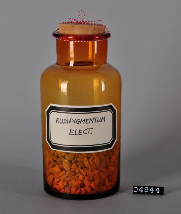 Das arsen- und schwefelhaltige, auch Gelber Arsenik genannte Mineral musste in der Apotheke im Giftschrank aufbewahrt werden. Noch bis Ende des 19. Jahrhunderts bereiteten die Apotheker unter Zusatz von Arabischem Gummi und gebranntem Kalk daraus ein Enthaarungspulver. Der mit Wasser angerührte Brei wurde zur Kontrolle auf eine Vogelfeder gestrichen - nach halbstündigem Einwirken sollten sich die Federhaare problemlos vom Kiel lösen.
