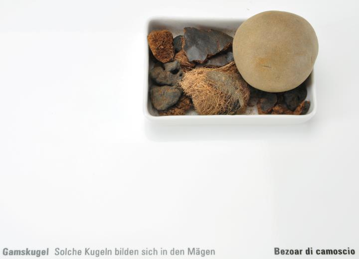 Solche Kugeln finden sich in den Mägen der Gemsen, wenn sich rund um einen Fremdkörper mehrere Schichten von Wurzelfasern und Haaren zusammen ballen. Als Amulett getragen, sollten sie in Anlehnung an die schwindelfrei kletternden Gemsen gegen Schwindel helfen, aber auch Fieber und Pest vertreiben. Wegen ihrer giftwidrigen Wirkung wurden sie bis ins 19. Jh. als ”deutsche Bezoarsteine” gehandelt. In kleinen Stückchen mit Wein getrunken, standen sie im Ruf, dass sie ”die Geister sehr fröhlich machten”.
