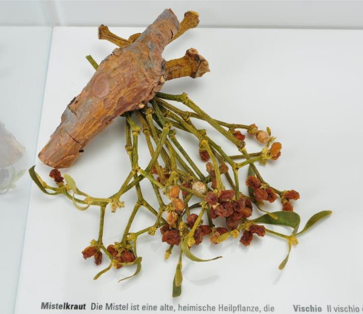 Die Mistel ist eine alte, heimische Heilpflanze, die auf Grund ihres auffallenden Aussehens und ihres besonderen Verhaltens – sie blüht im Winter – seit jeher zur Abwehr von bösem Zauber im abergläubischen Brauchtum diente. Weil sie in großen, wuchernden Kugeln auf verschiedensten Bäumen schmarotzt, wurde sie gemäß der Signaturenlehre als Mittel gegen Krebsgeschwüre eingestuft. Dieser Zusammenhang hat sich insofern bestätigt, als Mistelextrakt in der heutigen Alternativmedizin zur Steigerung der Abwehrkräfte bei der Nachbehandlung von Tumorerkrankungen eingesetzt wird.