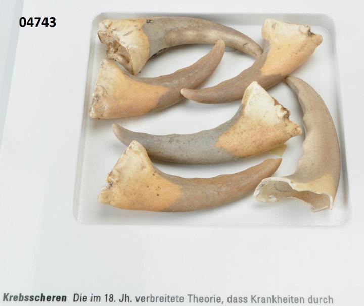 Die im 18. Jh. verbreitete Theorie, dass Krankheiten durch überschüssige Säure im Körper entstehen, verhalf den kalkhaltigen und damit neutralisierend wirkenden Krebsscheren zu vielfältiger Verwendung in Arzneipulvern.