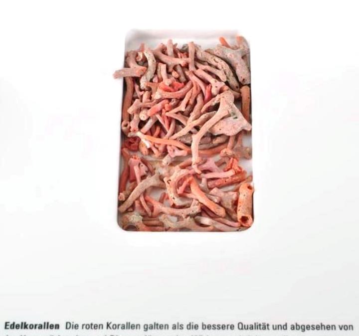Die roten Korallen galten als die bessere Qualität und abgesehen von der Herz stärkenden und Blut verdünnenden Wirkung schrieb man ihnen auch das Gemüt erheiternde Eigenschaften zu.