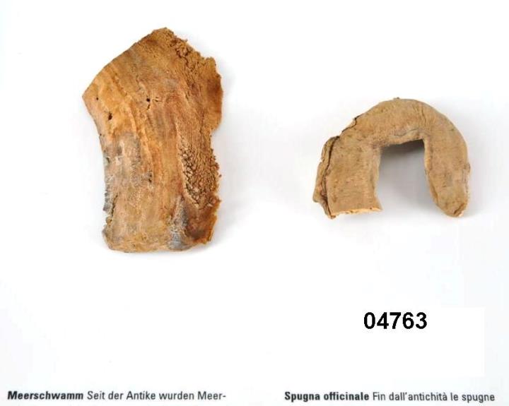 Seit der Antike wurden Meerschwämme vielseitig gebraucht: In der Chirurgie zum Aufsaugen von Körperflüssigkeiten, in gebranntem Zustand als innerlich einzunehmendes Kropfpulver oder mit schmerzstillenden Säften getränkt als Schlafmittel unter die Nase gelegt.