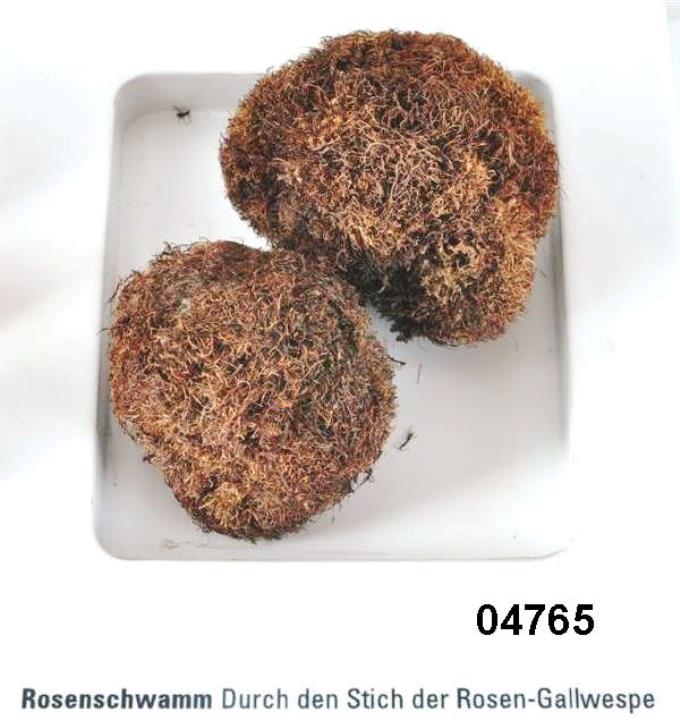 Durch den Stich der Rosen-Gallwespe bilden sich die rundlichen Auswüchse an Rosenblättern und Rosentrieben. In getrocknetem Zustand wurden sie im 17./18. Jh. als Schlafapfel oder Schlafschwamm unters Kopfkissen gelegt. Geröstet sollten sie gegen Kropf helfen.