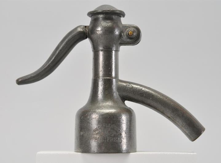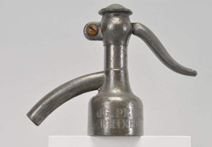 Ersatzteile für Siphonflasche: Hebel für Pump-Druck-Verschluss aus Zinkspritzguß, zwei innenliegende Glasrohre der Firma Pochtler sowie ein Ansatzstück für innenliegendes Glasrohr auch der Firma Pochtler. Verschluss mit Gravur: Ig. Peer, Brixen, Rückseite: Carl Pochtler, Wien und Doppelaler.